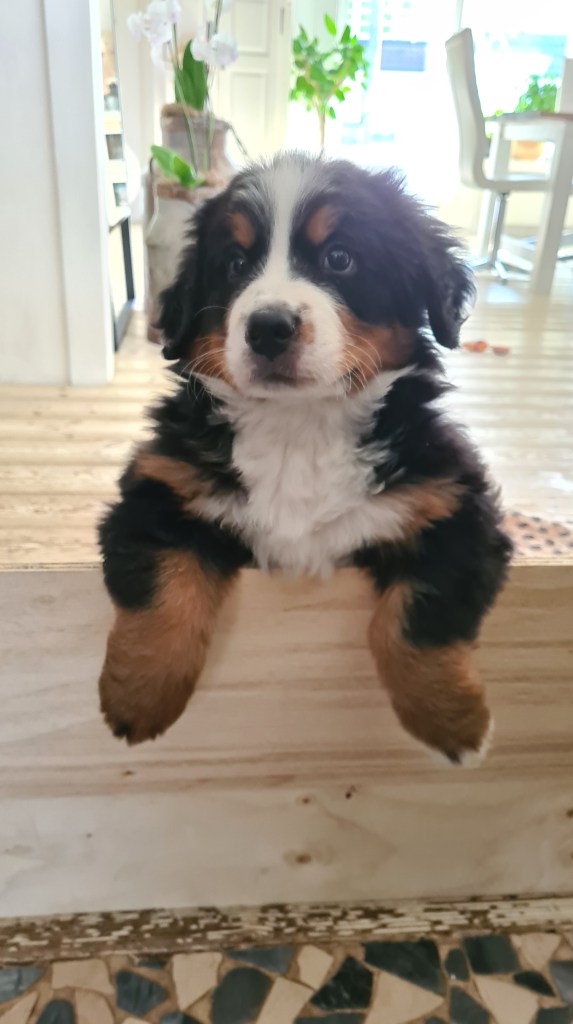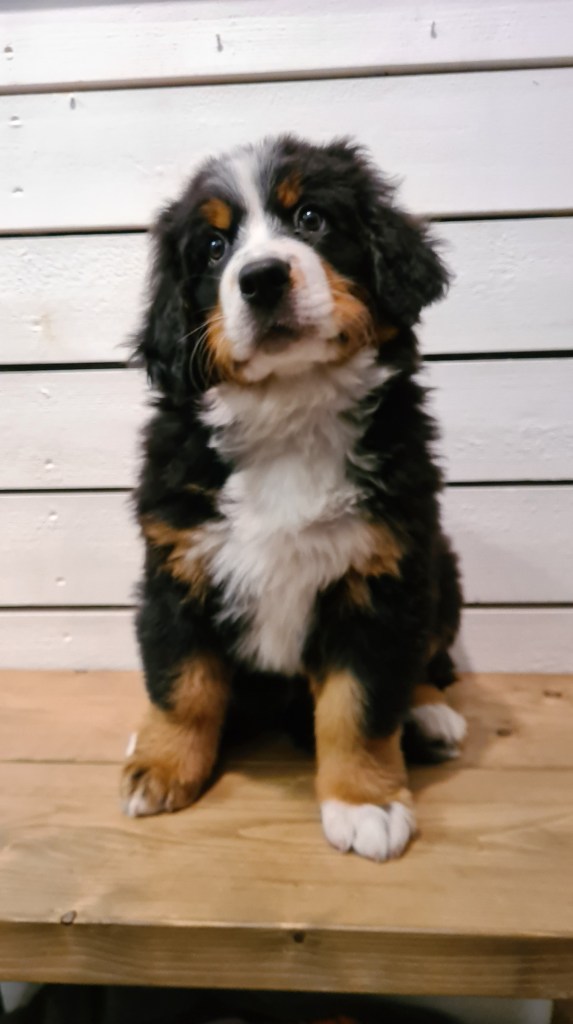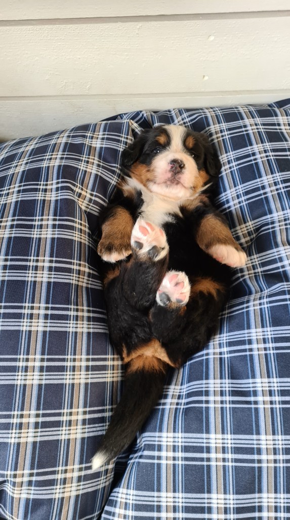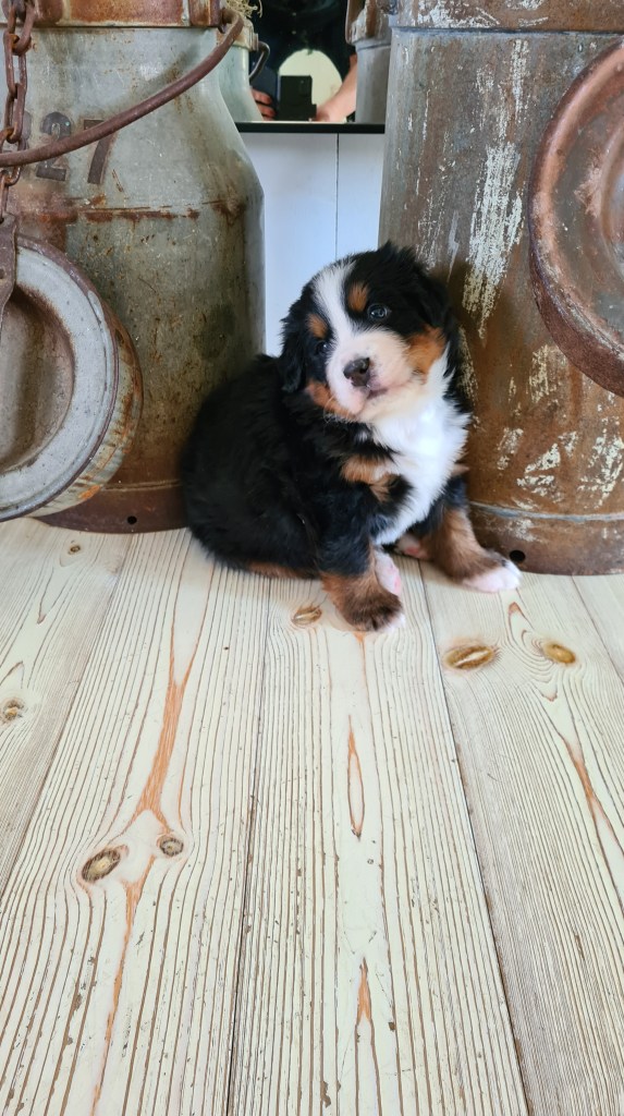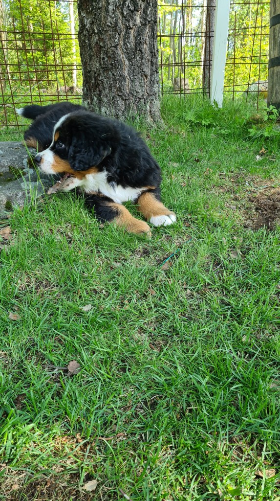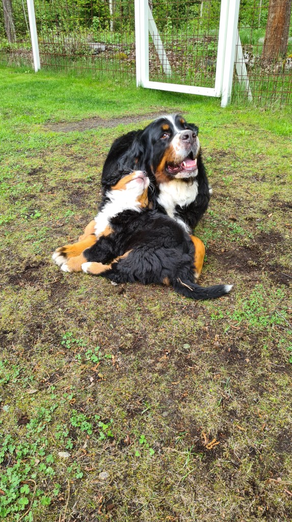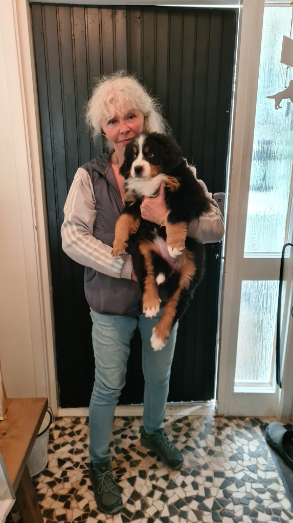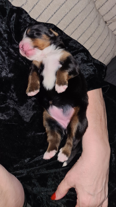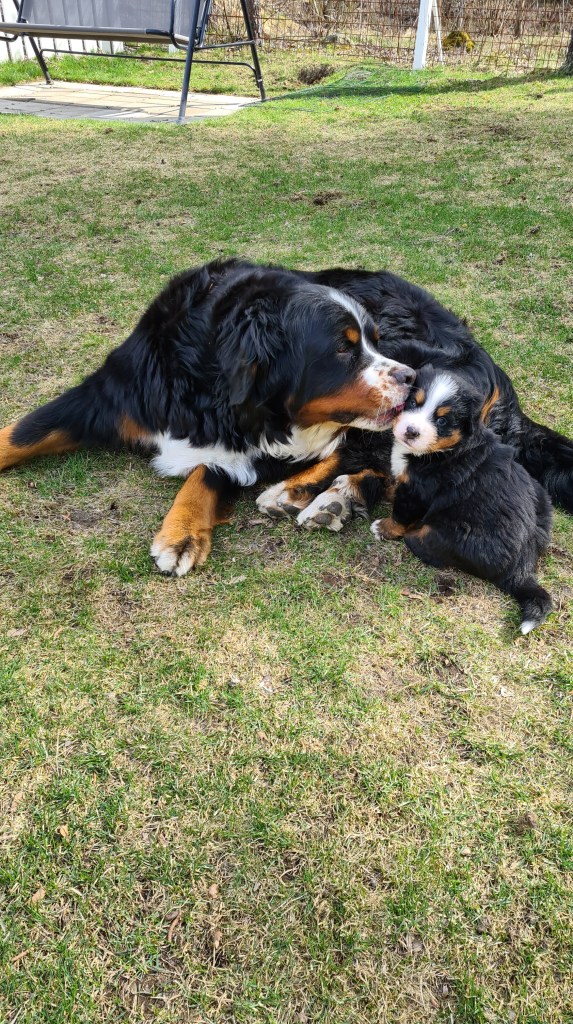 Pippi stolt mamma med nyfödda valpen Bonnie